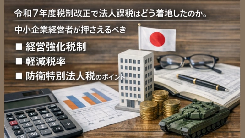 【令和7年度 税制改正】中小企業経営者が押さえるべき法人課税ポイント 公開日:2026年1月5日 中小企業法人税税制改正大綱税金防衛特別法人税 令和7年度(2025年)の税制改正では、中小企業に向けた支援強化と、新たな税負担の両方が盛り込まれました。 キーワードは――「成長企業は優遇、黒字企業はきっちり納税」 本記事では、中小企業経営者が知って得する法人課税の改 […] 続きを読む